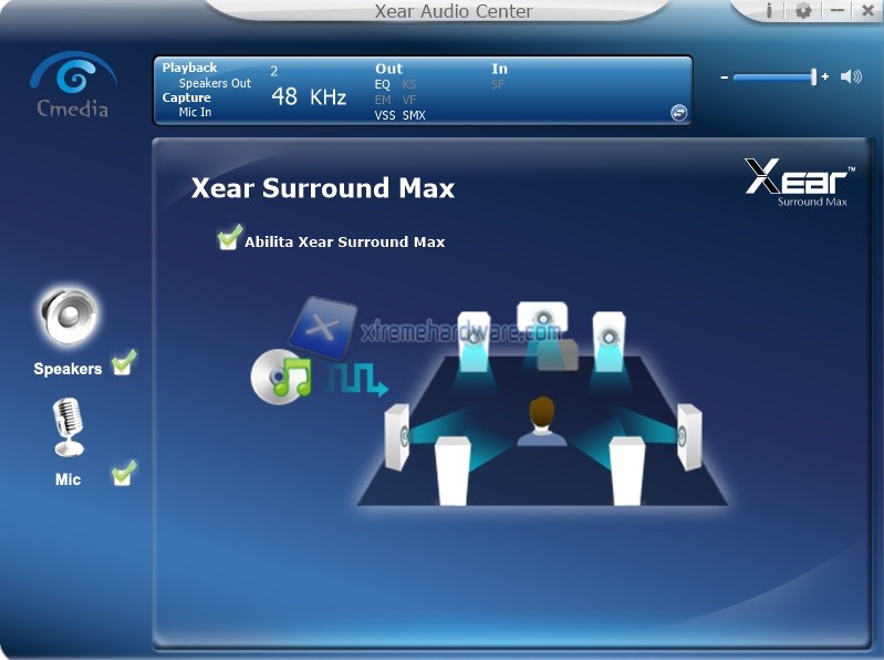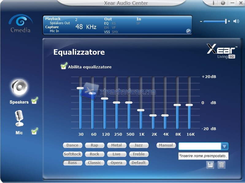 Nel ‘’Menù’’ Speaker potremo accedere alle varie personalizzazioni di campionamento, equalizzazione, virtualizzazione, sound effect e cosi via. La modifica è immediata e di facile comprensione vista anche la localizzazione in italiano del software.
