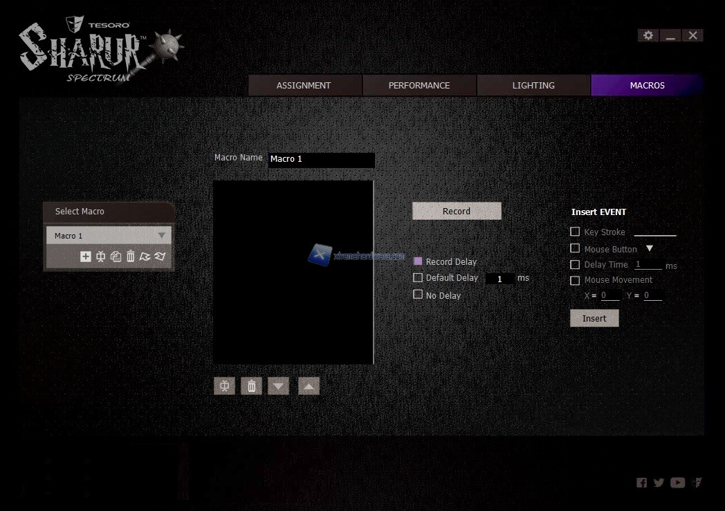 Ultimo Menù è ‘’Macros’’ da dove potremo registrare una nostra macro e successivamente impostarla in un tasto a noi comodo.