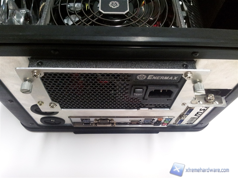 L'ulitma questione riguarda una piccola dritta che vi diamo per recuperare un pochino di spazio all'interno del case e soprattutto per i cavi dell'alimentatore che, nella maggior parte dei casi, vengono molto infastiditi dal cestello per gli HDD, vi basterà inserire dei piccoli distanziali, come quelli che si utilizzano per le mainboard, tra il telaio esterno del case e il frame in alluminio atto a fermare l'alimentatore, in questo caso l'alimentatore sporgerà di circa 1cm fuori dal case permettendovi di gestire molto più facilmente i cavi che escono dalla parte opposta.