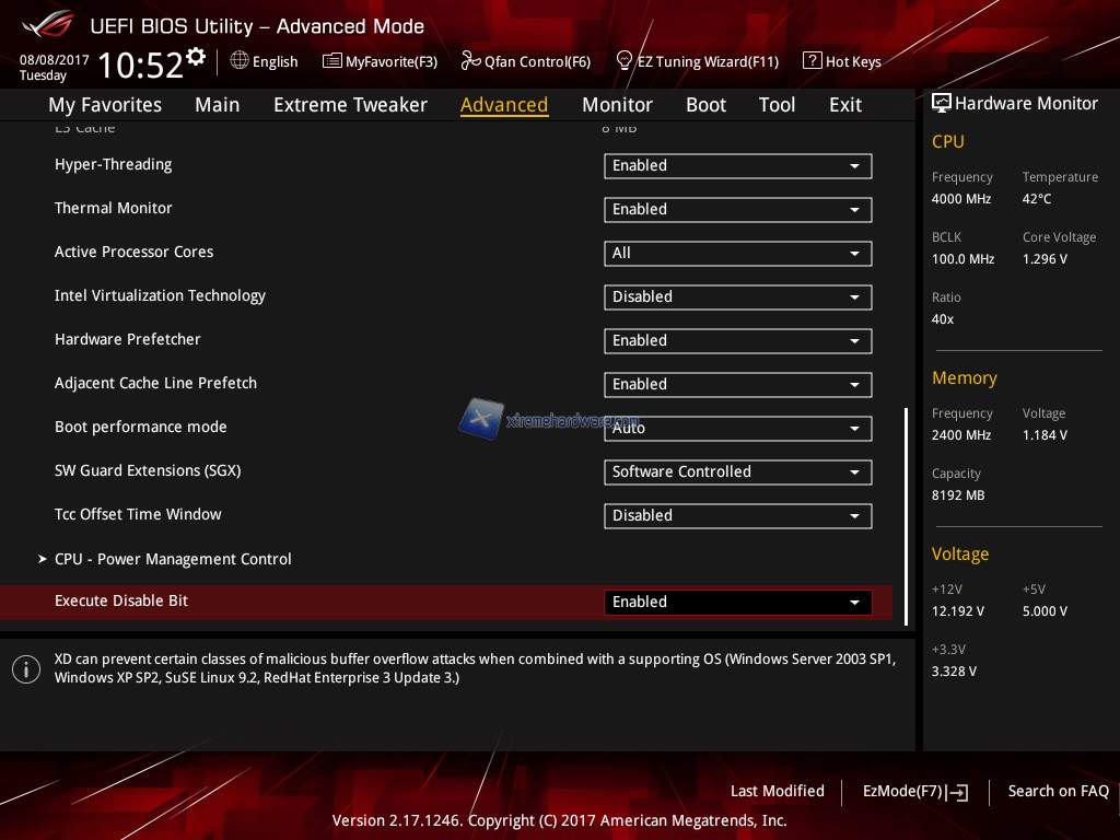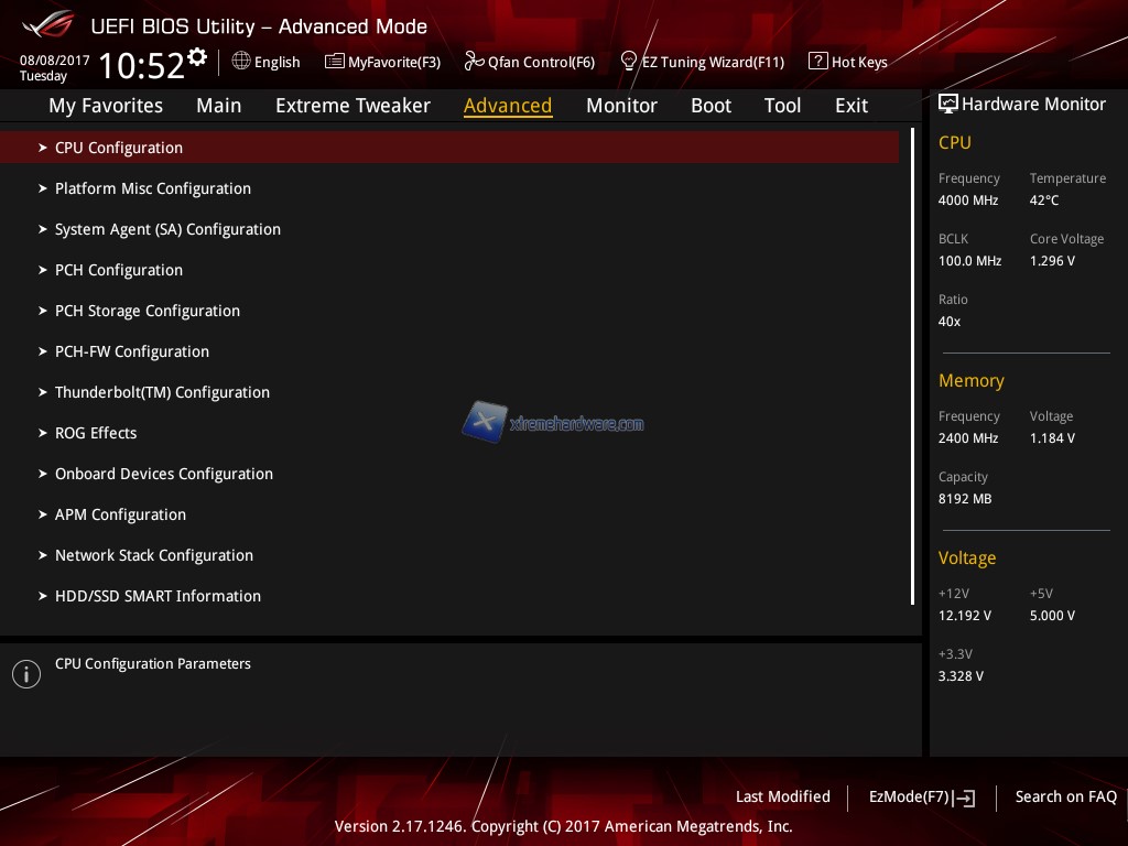 Passiamo al BIOS della ASUS ROG STRIX Maximus IX Extreme. Come sappiamo ASUS è detentrice tutt’oggi di uno dei più completi e funzionali BIOS in circolazione. Ricco di numerose funzionalità e voci che permette una minuziosa personalizzazione sia per utilizzo classico sia per Overclock. Con la nuova serie di schede madri Z270 non è cambiato molto a partire dall’interfaccia.