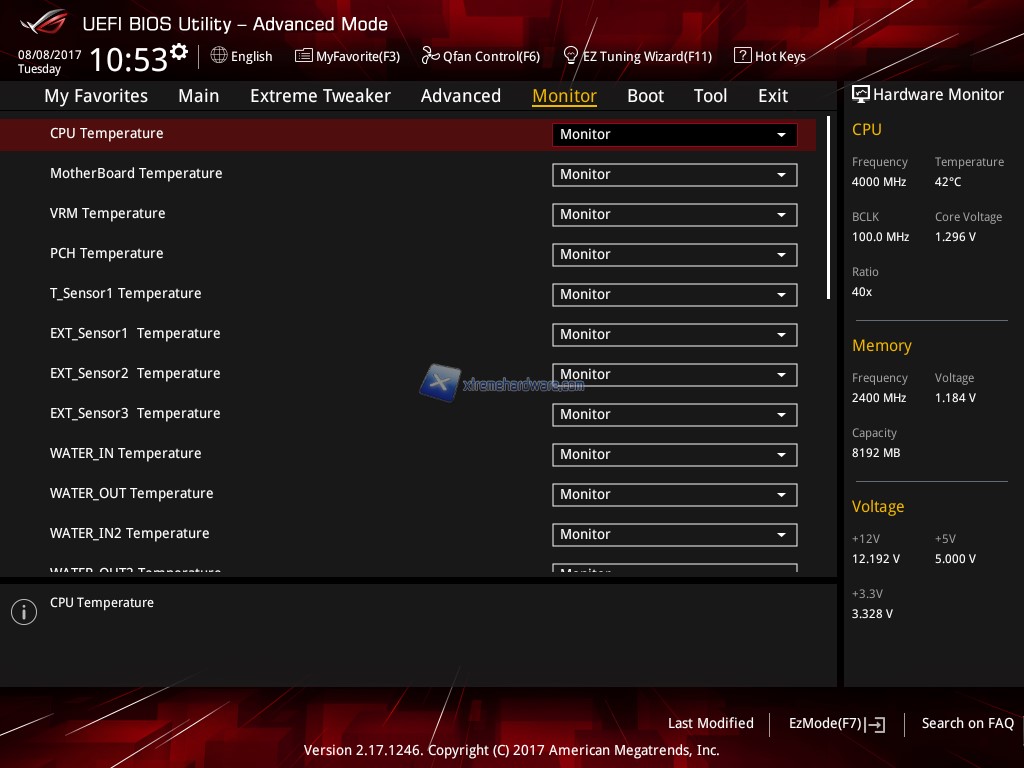 Nel Menù ‘’Monitor’’ potremo controllare le temperature relative alla CPU, scheda madre, VRM, PCH e controllare la velocità delle ventole connesse compresa quella della CPU nonché i voltaggi. Da qui potremo anche disattivare dicasi ‘’Ignore’’ eventuali sensori.