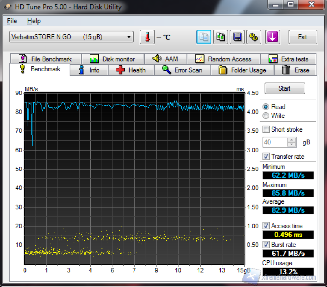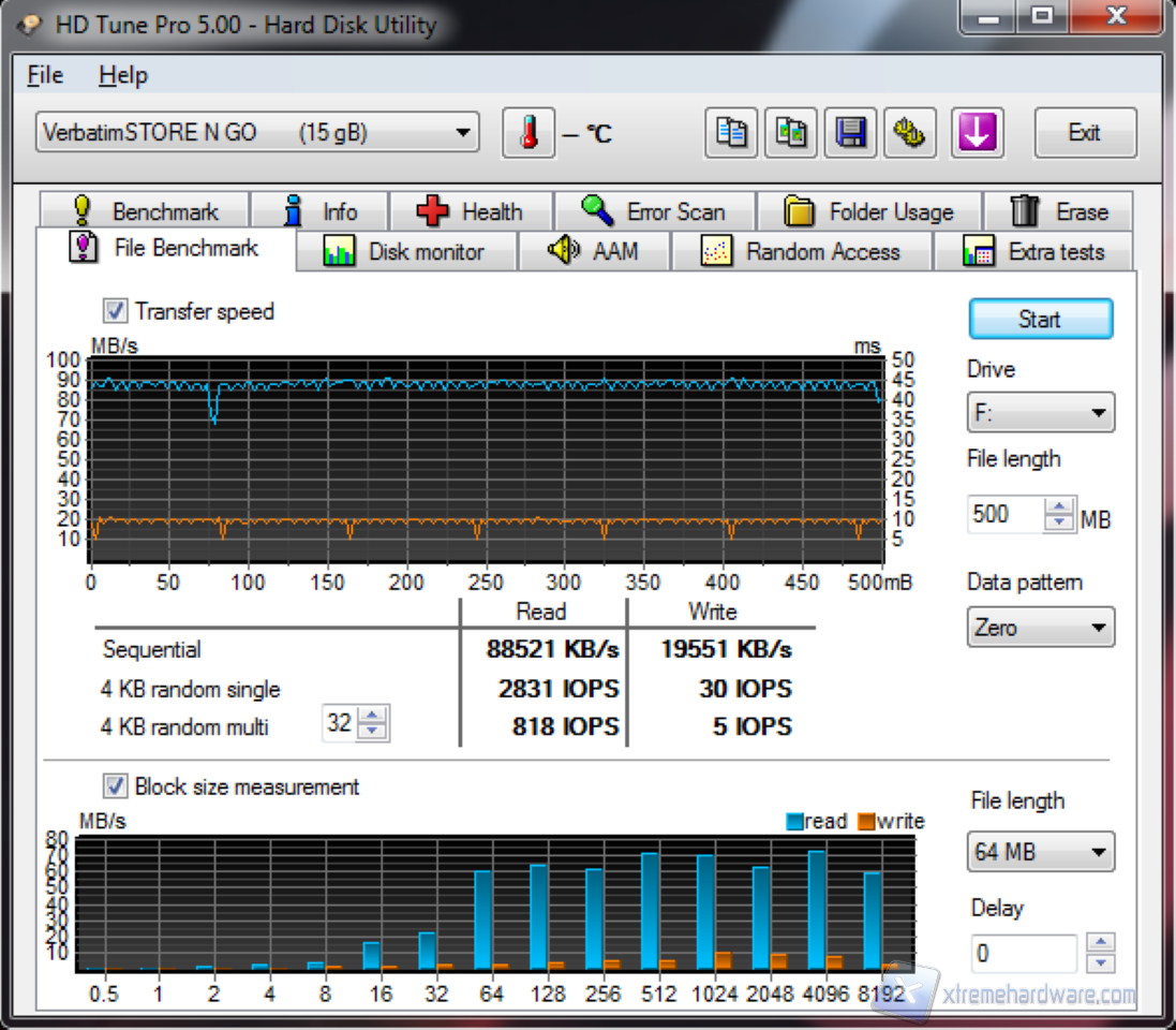 HD Tune Pro è un utility per hard disks e SSDs con molte funzioni; può essere utilizzata per misurare in modo accurato le performance del nostro drive alla ricerca di errori, in quanto permette anche di monitorare lo stato vitale del drive, permette di cancellare i dati in modo sicuro e molto altro ancora. La versione da noi utilizzata è l'ultima disponibile almomento e si tratta della 5.00. Il programma è disponibile in due versioni, una freeware (HD Tune) ed una a pagamento (HD Tune Pro).
